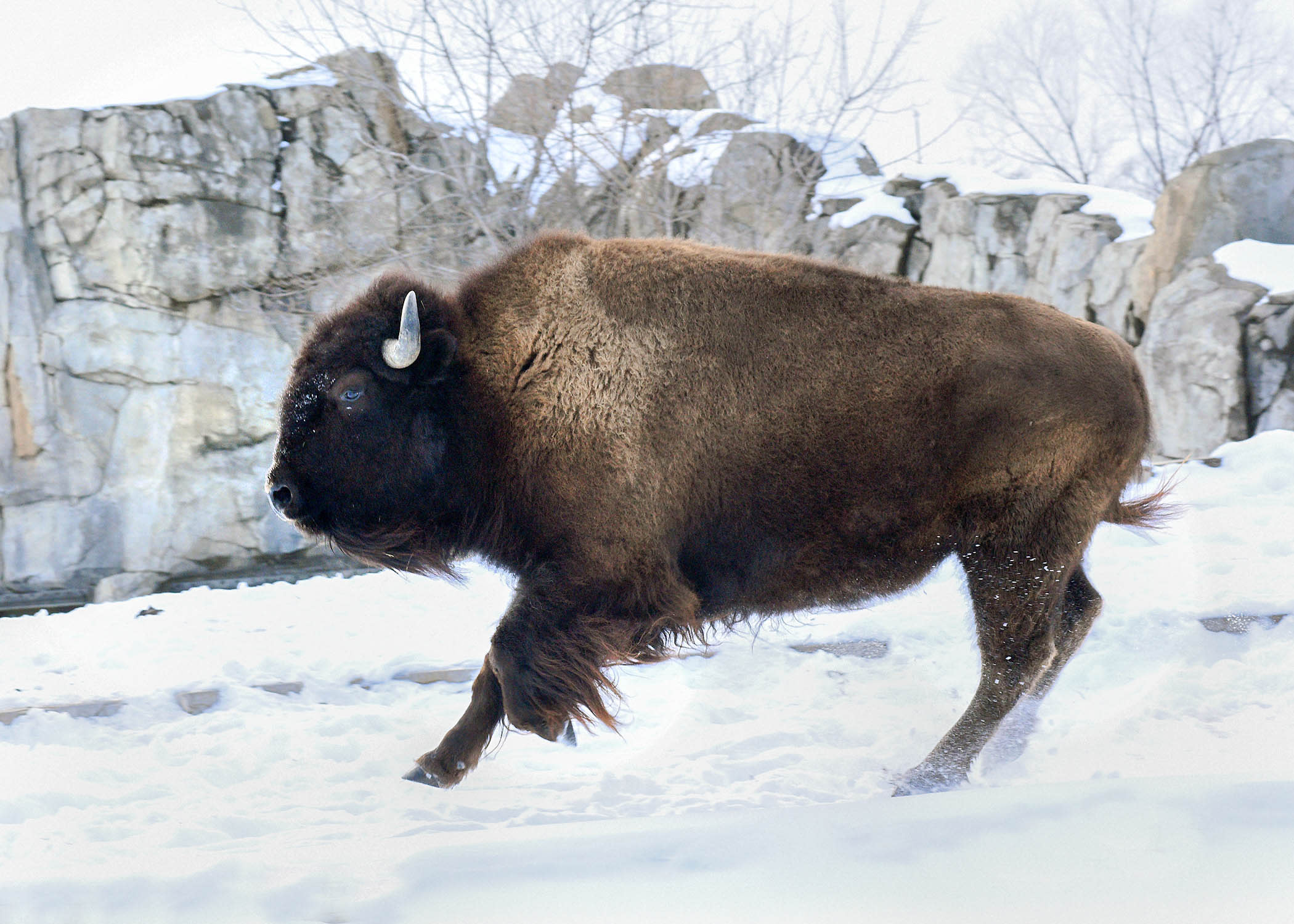 Brookfield Zoo Chicago cares for four bison (two male, two female). The species has been a symbol of the Zoo since its opening in 1934 and has resided here since 1940! The Zoo helps promote and build understanding of the needed conservation measures to keep both wild and zoo bison populations sustainable and healthy.